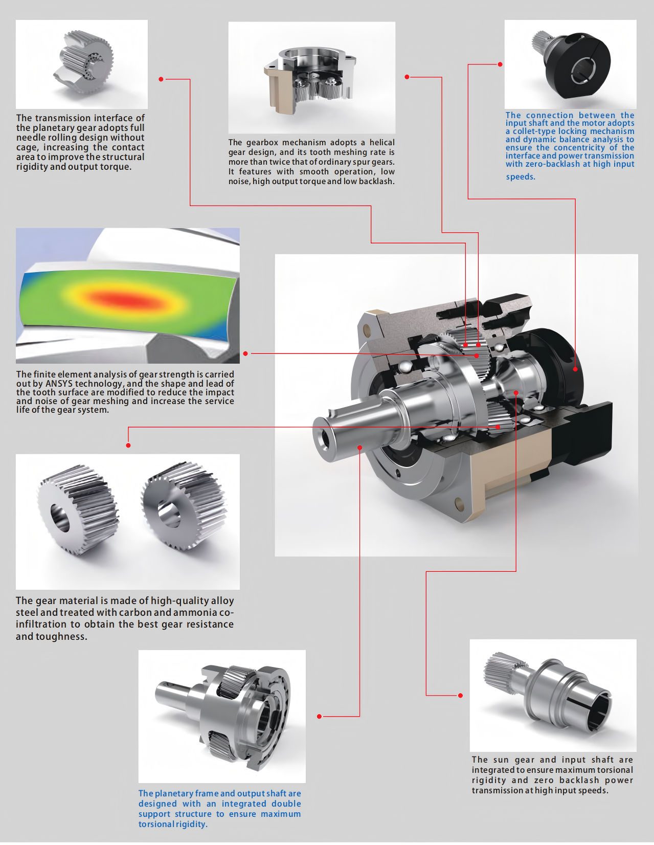 7.High Speed Reduction Ratio:The gear reducer is a modular design. The planetary gear box can be connected.